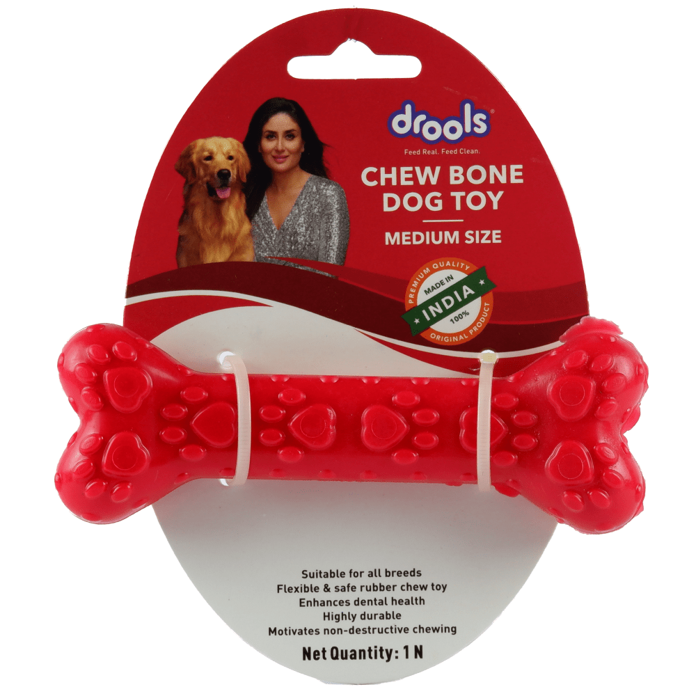 Drools Non-Toxic Rubber Dog Chew Bone Toy is a flexible, non-toxic rubber chew toy. It helps improve dental health and encourages non-destructive chewing. It is suitable for all dogs.