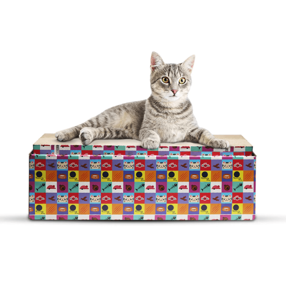 PawsIndia's 5-in-1 Replaceable Box Cat Scratcher is a never-ending cat scratcher made from recyclable cardboard material to encourage play among cats and thus prevent the cat from damaging your valuable furniture. This unique cat scratcher comes with 5 both sides scratching boards which can be changed when one of them gets used or scratched up. The cat can't resist scratching the corrugated surface of the cardboard, which gives them a feeling of joy and satisfaction. This adorable toy has a one-of-a-kind design that allows your cat to satisfy its scratching need, relieve stress, and act as a suitable furniture substitute while also preventing your cat from scratching the carpet and mat in your home. This invincible cat scratcher toy is composed of non-toxic, robust cardboard that can endure your cat's sharp claws and nails while still keeping them healthy This toy is appropriate for young kittens, older Persian and other breed cats. Just flip it over when one side gets scratched up and witness your cat enjoy scratching to the fullest while protecting your furniture.