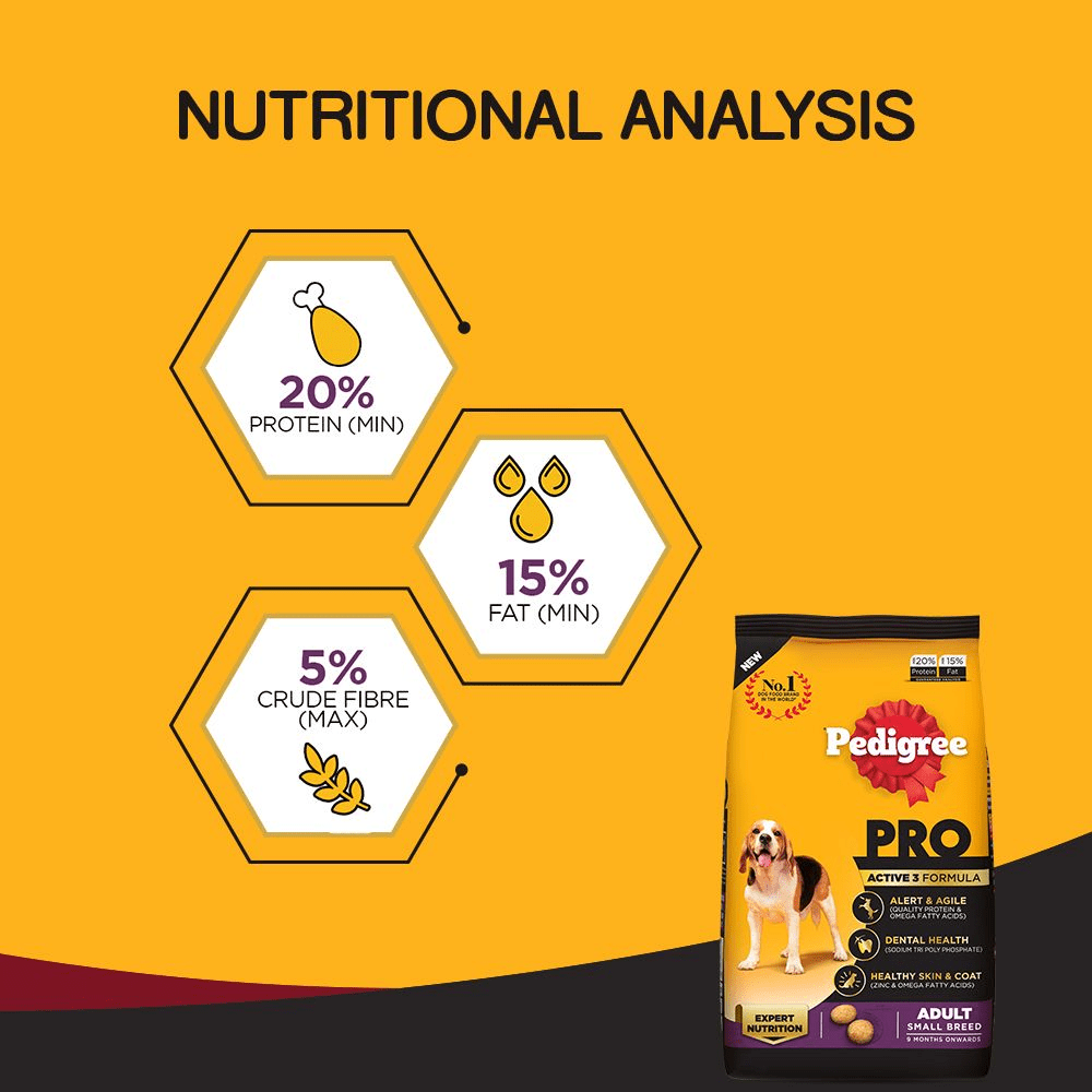 Different dog breeds have different nutritional needs, depending on their size and respective weight. The Pedigree Pro Small breed adult dog food is ideal for breeds like Beagles, Shih Tzu, Pomeranian, Dachshund, Pug, Lhasa Apso etc. The Pedigree Pro range is nutrient and protein rich which is needed to support their growth.