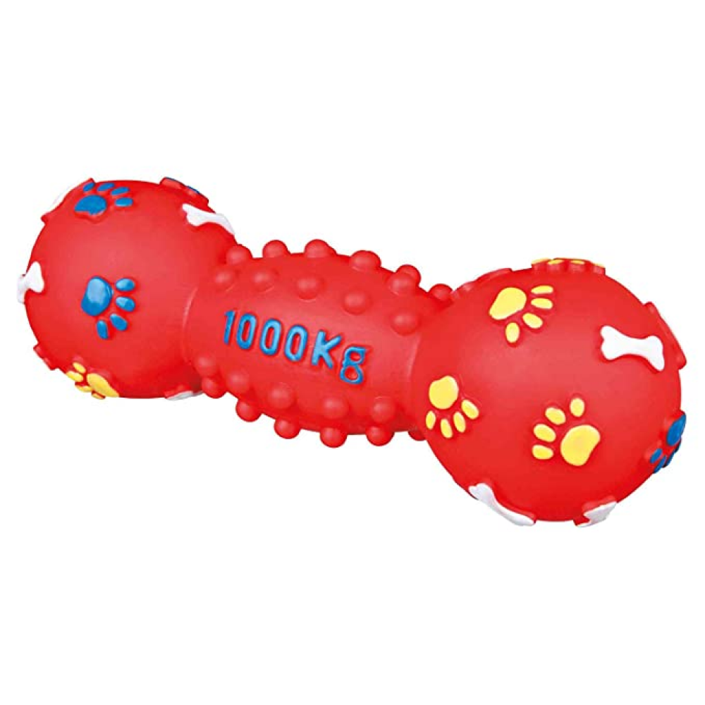 Trixie dumbbell squeaky toy is a great choice for your pet dog. Made from non-toxic vinyl rubber material, it causes no harm to your pet. Encourages exercise and play.