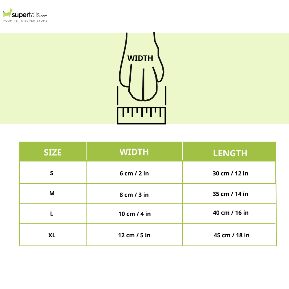 | XL | 12 cm / 5 in | 45 cm / 18 in |